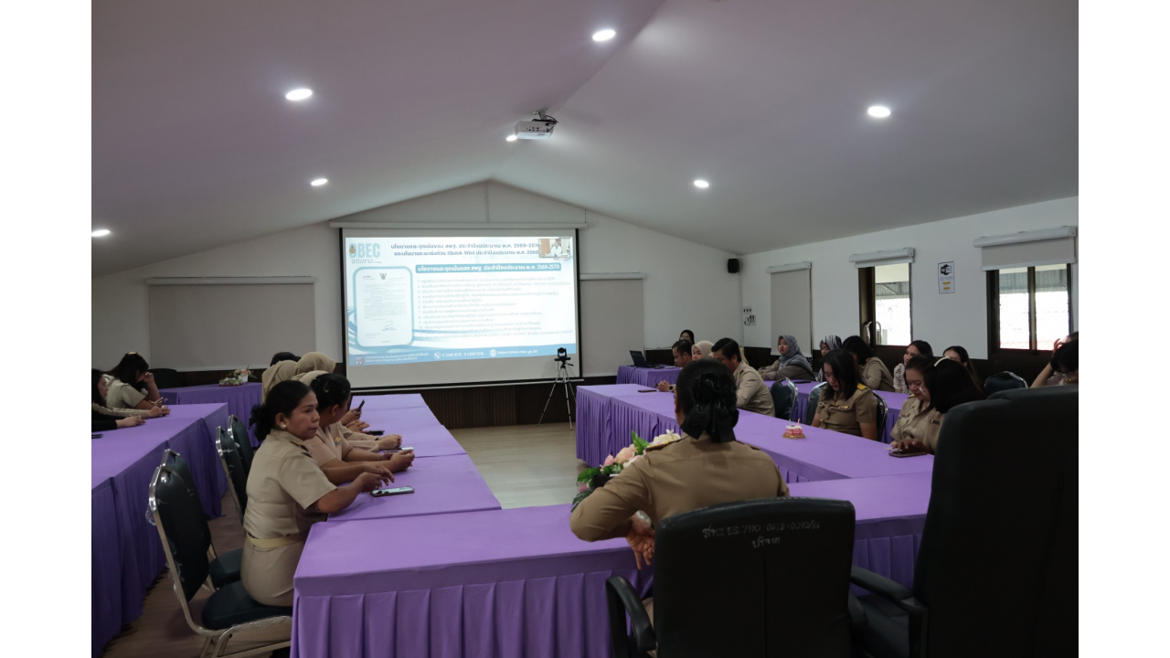 วันที่ 16 มีนาคม 2569 นายเทอดนคร ห้องแซง ผู้อำนวยการสำนักงานเขตพื้นที่การศึกษามัธยมศึกษายะลา มอบหมายให้ นางอวยพร ซุ่นกี่ รองผู้อำนวยการสำนักงานเขตพื้นที่การศึกษามัธยมศึกษายะลา พร้อมด้วยบุคลากรในสังกัด เข้าร่วมการประชุมชี้แจงแนวทางลดภาระครู ตามนโยบายระยะเร่งด่วน (Quick Win) ของสำนักงานคณะกรรมการการศึกษาขั้นพื้นฐาน ประจำปีงบประมาณ พ.ศ. 2569 ผ่านระบบอิเล็กทรอนิกส์ ZOOM Meeting ณ ห้องประชุมเมืองงามชายแดน ชั้น 3 สำนักงานเขตพื้นที่การศึกษามัธยมศึกษายะลา