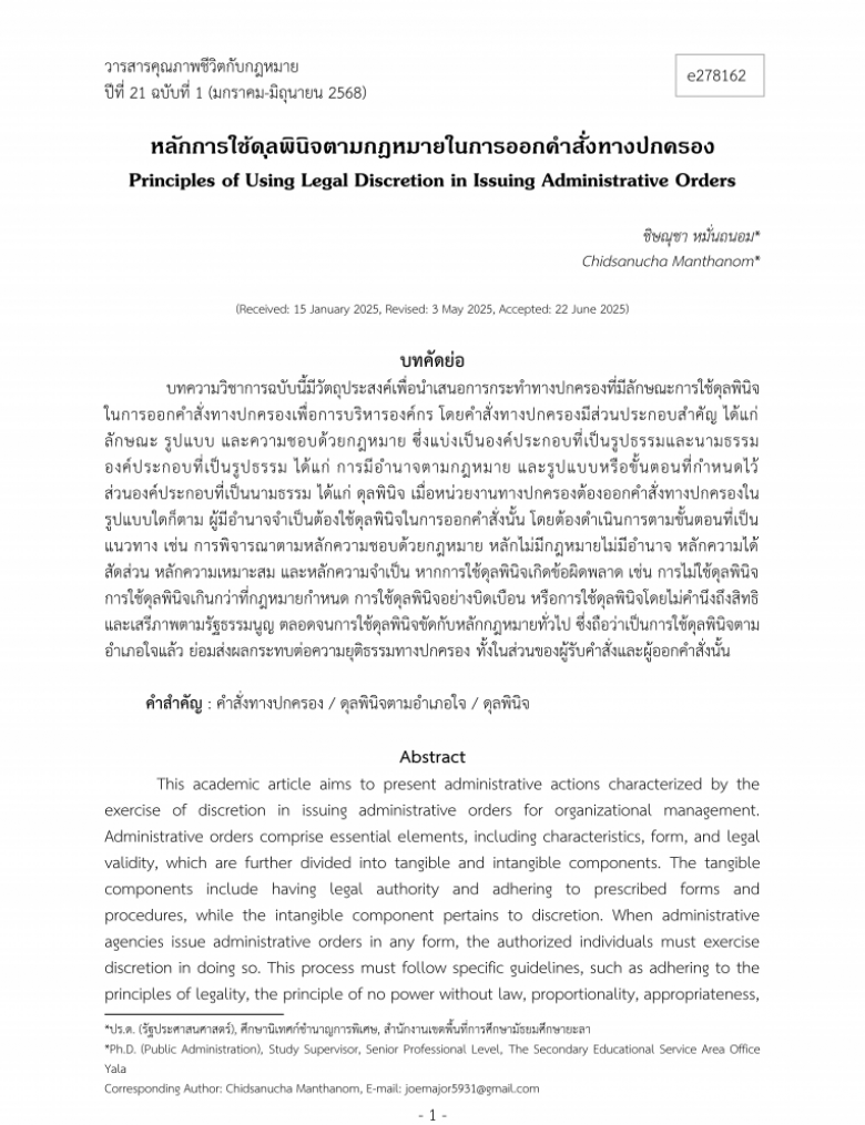 ผลงานวิชาการตีพิมพ์ในวารสาร TCI กลุ่มที่ 1 ของ ดร.ชิษณุชา หมั่นถนอม (ดู : 1,265)