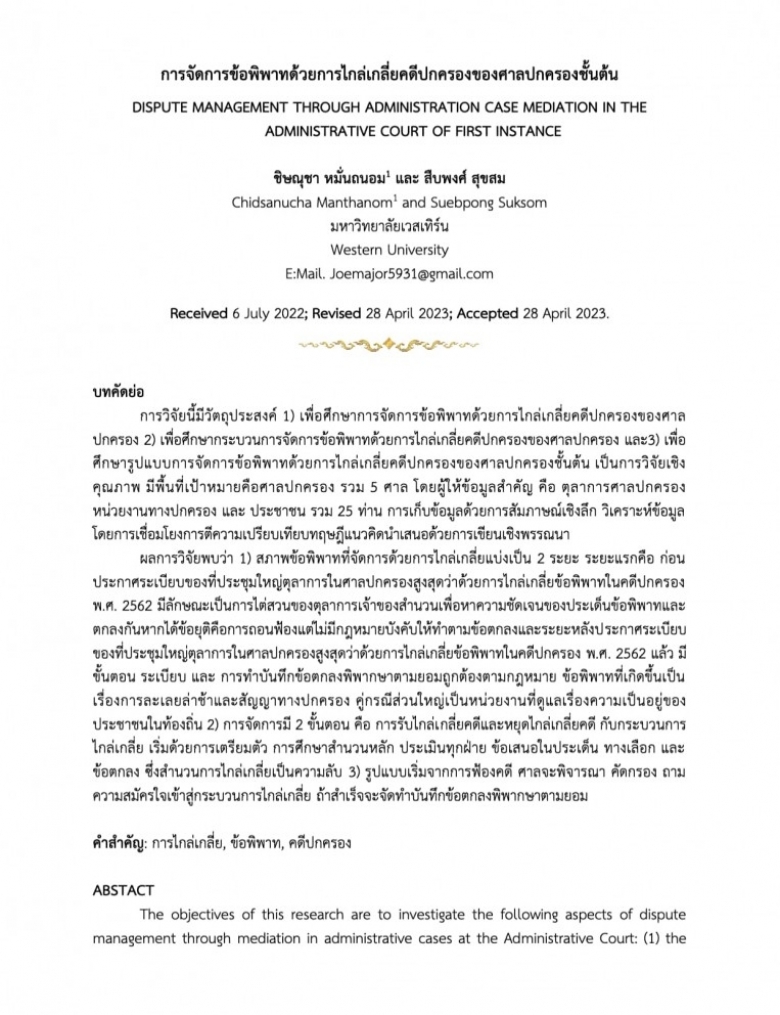 ผลงานวิชาการตีพิมพ์ในวารสาร TCI กลุ่มที่ 2 ของ ดร.ชิษณุชา หมั่นถนอม เร... (ดู : 935)