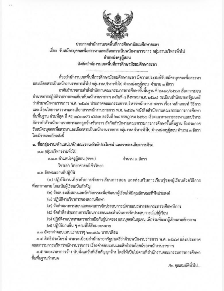 ประกาศสำนักงานเขตพื้นที่การศึกษามัธยมศึกษายะลา เรื่อง รับสมัครบุคคลเพ... (ดู : 269)