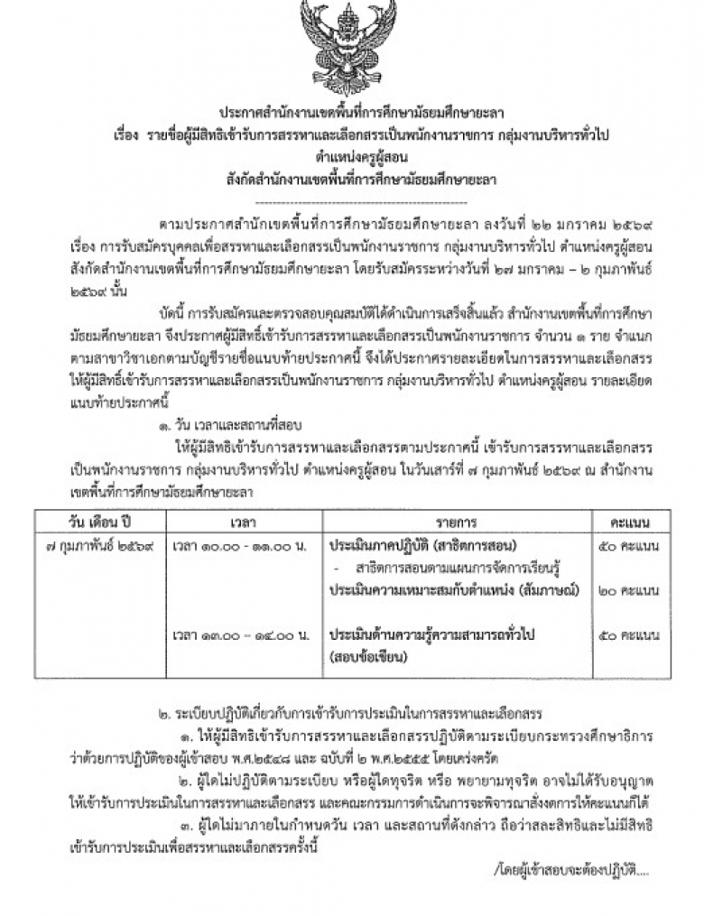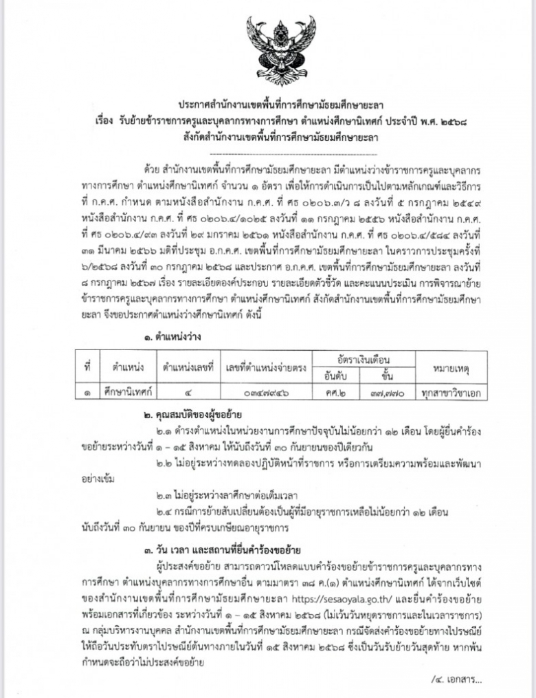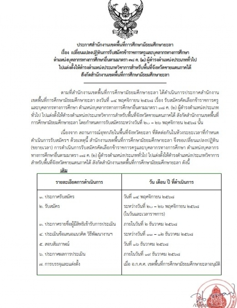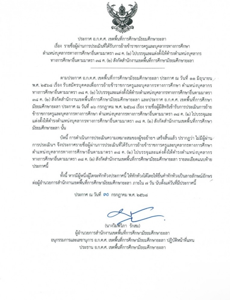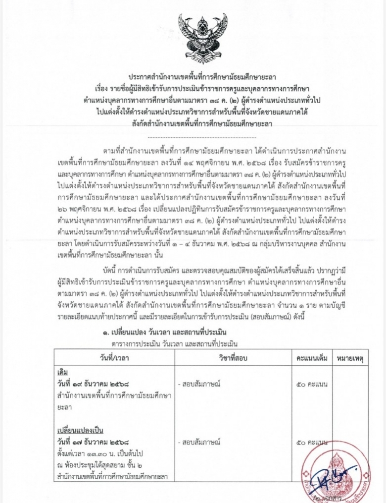 ประกาศสำนักงานเขตพื้นที่การศึกษามัธยมศึกษายะลา เรื่อง รายชื่อผู้มีสิท... (ดู : 156)