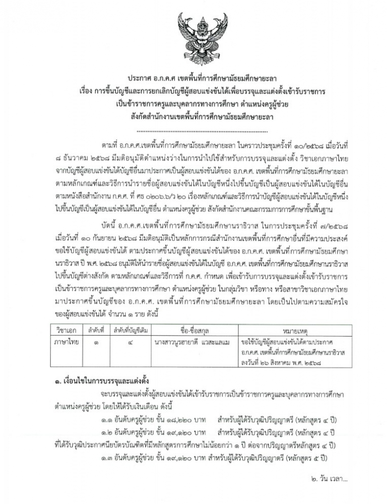 ประกาศ อ.ก.ค.ศ.เขตพื้นที่การศึกษามัธยมศึกษายะลา เรื่อง การขึ้นบัญชีและ... (ดู : 199)
