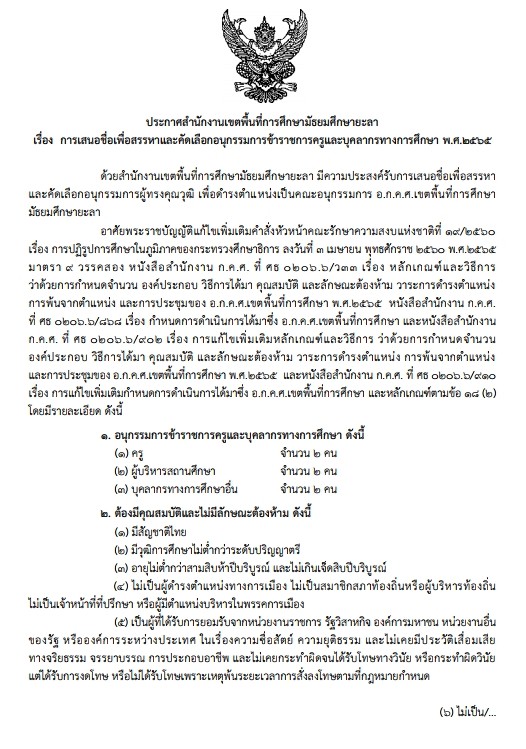 ประกาศ สพม.ยะลา เรื่อง การเสนอชื่อเพื่อสรรหาและคัดเลือกอนุกรรมการข้าราชการครูและบุคลากรทางการศึกษา พ.ศ.2565