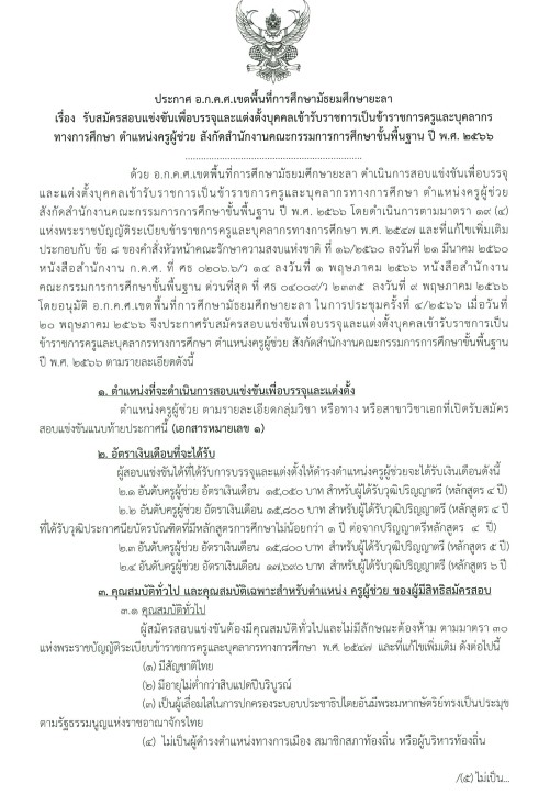 ประกาศรับสมัครสอบแข่งขันเพื่อบรรจุและแต่งตั้งบุคคลเข้ารับราชการเป็นข้าราชการครูและบุคลากรทางการศึกษา ตำแหน่งครูผู้ช่วย สังกัดสำนักงานคณะกรรมการการศึกษาขั้นพื้นฐาน ปี พ.ศ.2566