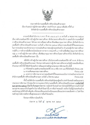 ประกาศ อ.ก.ค.ศ.เขตพื้นที่การศึกษามัธยมศึกษายะลา เรื่อง การขึ้นบัญชีและการยกเลิกบัญชีผู้สอบแข่งขันได้เพื่อบรรจุและแต่งตั้งเข้ารับราชการเป็นข้าราชการครูและบุคลากรทางการศึกษา ตำแหน่ง ครูผู้ช่วย สังกัดสำนักงานเขตพื้นที่การศึกษามัธยมศึกษายะลา (ดู :2,613)