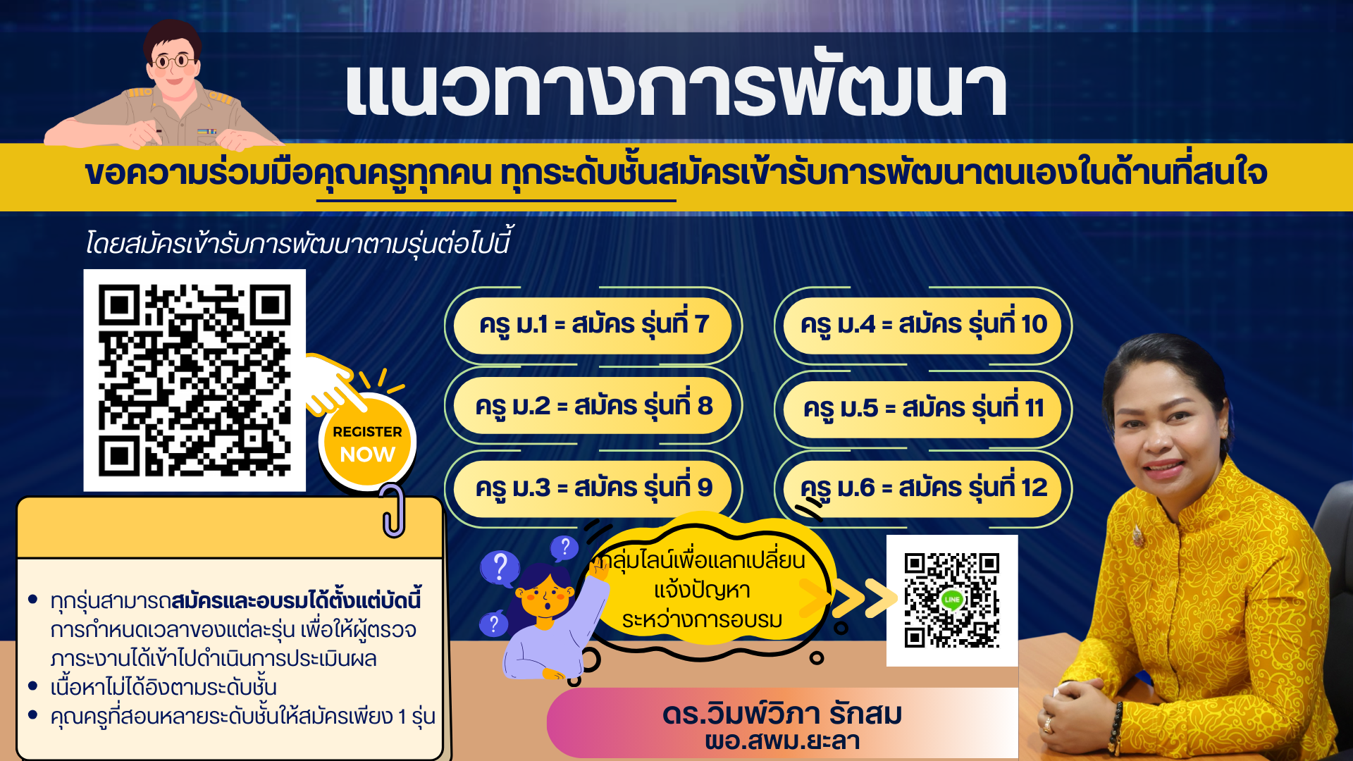 >> คลิกเข้าสู่ช่องทางสมัครเข้ารับการพัฒนาตามรุ่นที่กำหนด <<