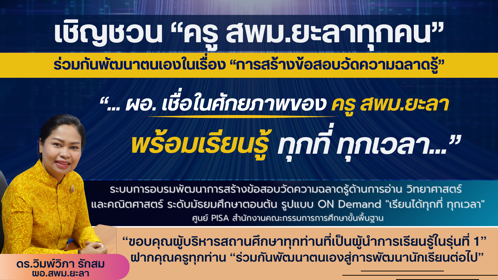 เชิญชวน "ครู สพม.ยะลา ทุกคน" ร่วมกันพัฒนาตนเองในเรื่อง "การสร้างข้อสอบวัดความฉลาดรู้"