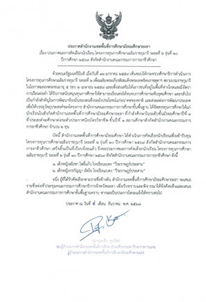 ประกาศ สพม.ยะลา เรื่อง ผลการคัดเลือกนักเรียนเข้าร่วมโครงการส่งเสริมการมีรายได้ให้แก่นักเรียน (ทุนแลกงาน) ประจำปี พ.ศ. 2569 (ดู :136)