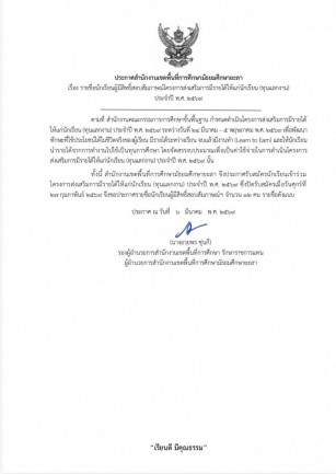 ประกาศ สพม.ยะลา เรื่อง ผลการคัดเลือกนักเรียนเข้าร่วมโครงการส่งเสริมการมีรายได้ให้แก่นักเรียน (ทุนแลกงาน) ประจำปี พ.ศ. 2569 (ดู :135)